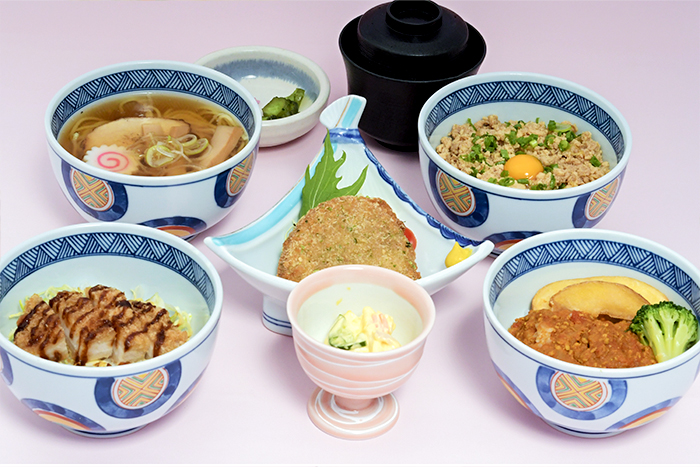 その日の気分で選べる4種の中から2つ楽しめるミニ丼セットです