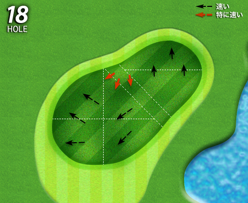 | グリーン | : | 2段グリーン、奥から非常に速い |