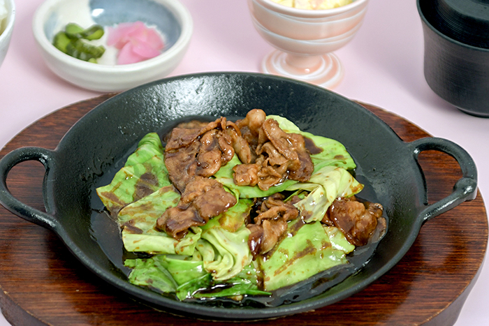 みずみずしい春キャベツと豚肉を香ばしく炒めたご飯のすすむ一品です