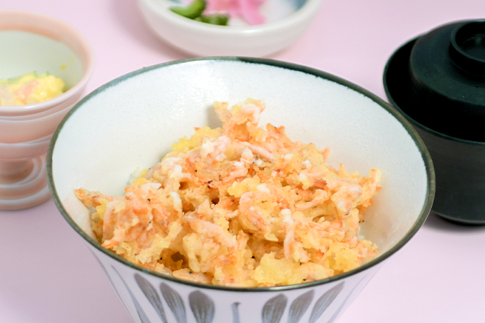 駿河湾特産の「海の宝石」と呼ばれる桜えびを香ばしいかき揚げで味わう