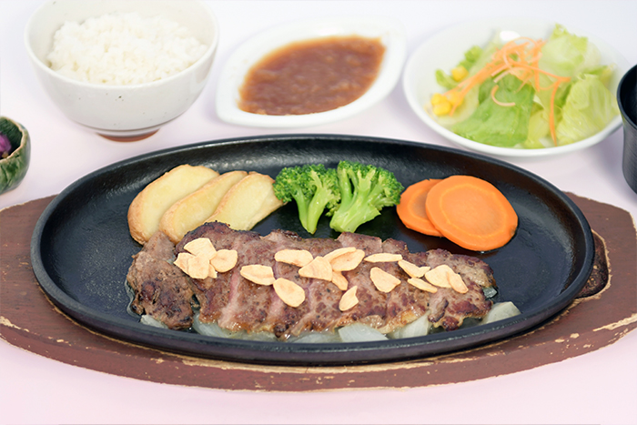 ジューシーな牛肉をガーリックで香ばしく焼き上げた一品。豊かな香りと旨味が食欲をそそり、ご飯が進むこと間違いなし!※柔らかく、ジューシーな食感を味わっていただくため、和牛の脂を差し込んであります